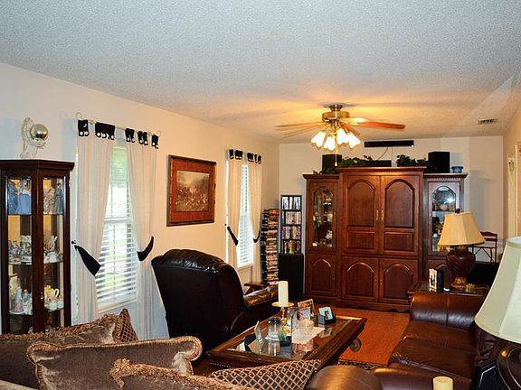 This immaculate yard and brick home are loaded with amenities. Split floor plan with a light and bright interior. Large family room with two full windows. Kitchen features stainless steel appliances, eat-in bar and granite countertops. Separate dining room with built in cabinetry. Four bedrooms with two and a half baths. Front yard irrigation, lawn lighting, electrical outlets and eve outlets in front yard for decoration purposes. Above ground saltwater pool 27 ft round 52" deep. Pool has a 20 x 20 deck with 4 ft wide walk around accompanied by pool house. Pool house has am/fm,cd marine radio with surround sound. Enjoy the spacious 16 x 10 deck off the back of the home perfect for entertaining. Home security system, new a/c heat pump and extensive landscaping. Two car carport detached, greenhouse and two storage buildings are located in this large backyard. Schedule a showing to make this beautiful property your home.
