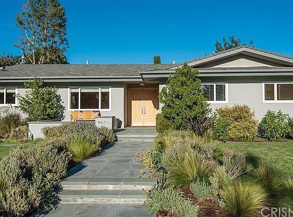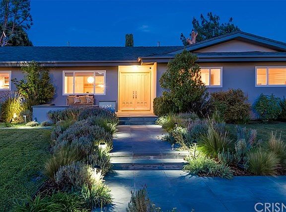A minimalist design for maximum enjoyment. This chic one story is replete with an outdoor kitchen featuring granite countertops, Viking bar-be-que & refrigerator, Pebble Tec saltwater pool & spa, & a canvas canopy to enjoy those wonderful California summers. Inside, hardwood floors grace the living & family rooms, kitchen, formal dining room & all four bedrooms. The chef's kitchen includes Subzero refrigerator, Thermador 6 burner stove, dishwasher & an island with Caesar Stone counters. Overlooking the pool & patio, the living room boasts a glass bottom fireplace. The formal dining room affords a 132 bottle wine refrigerator & French doors. A stereo system features built-in speakers throughout. The family room includes a 70 inch flat screen TV & surround sound speakers. The master bedroom is a private oasis with a gas fireplace, spacious walk-in closest with built-ins & French doors leading out to the pool/spa. The master bathroom is its own Shangri La with a dual head steam shower, jetted tub, dual bowl sinks atop a Caesar Stone counter. The $6000 toilet must be seen to be believed. A detached 20x44 RV garage will not only house your 40' RV but a boat, too. Gated for privacy, a security system is also included. LED lights add to the outside ambiance.