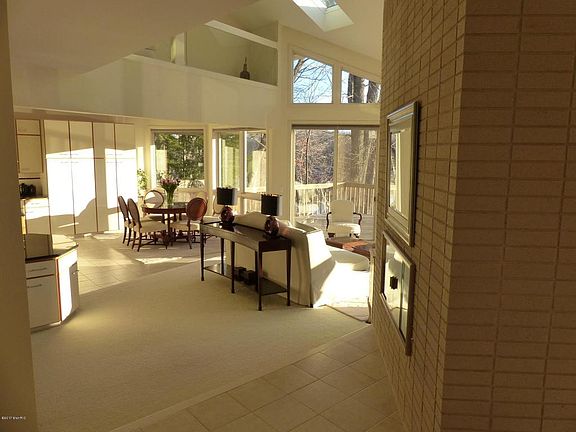 Beautiful 5 bedroom 5 bath 6,000 sq ft home. Prime Thornapple River frontage property with 277 feet of amazing views situated in exclusive Ravines Estates on 5.4 acre lot. Open concept home with window walls on each level opening to decks. Large kitchen for entertaining with eating area, stainless appliances, ceramic tile floor and direct access to great room and dining area. Upstairs private master suite includes incredible views from bedroom and from Kohler whirlpool tub and deck. River leve l features private quarters including full bath, 2 bedrooms, family room and second kitchen. 3 stall attached garage with an additional 2.5 stall detached garage with unfinished apartment above garage. Year round floating dock. Granite countertops throughout. Storage galore. Caledonia Schools.