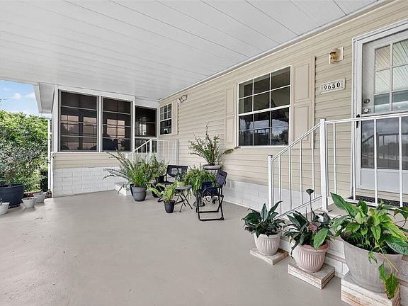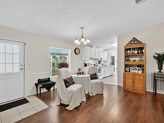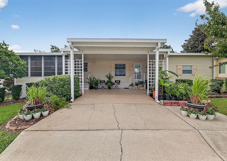 BEAUTIFUL HOME IN HILLTOP ESTATE, 55+ COMMUNITY, YOU OWN YOUR LAND!!! NO BOND!! NO CDD!! THIS FABULOUS 3-BEDROOM 2-BATH HOUSE HAS 1,350 SQ. FT. OF COMFORTABLE LIVING SPACE DESIGNED WITH BOTH CHARM AND FUNCTIONALITY IN MIND. AS YOU ENTER, YOU'RE WELCOMED BY SPACIOUS OPEN FLOOR PLAN WITH BEAUTIFULLY BROWN LAMINATE FLOORS. FRESHLY PAINTED WALLS, AND CROWN MOLDING. LARGE WINDOWS BRING THE OUTDOORS INSIDE. THE KITCHEN IS A TRUE CENTERPIECE, FEATURING A WALK-IN PANTRY AND COZY EAT-IN-AREA, THAT IS BRIGHT AND LIGHT AND COMFORTABLE!! PERFECT FOR MORNING COFFEE, PRIMARY SUITE HAD WALK-IN-CLOSET, AND LAMINATE FLOORS, HUGE WINDOWS, EN-SUITE HAS DUAL SINKS, CABINETRY FOR LINENS AND TOWELS, AND A SHOWER. GUEST ROOM ARE CARPETED WITH NICE SIZED CLOSETS, GUEST BATH HAS A BATH/SHOWER COMBO. THE LANAI EXTENDS YOUR LIVING SPACE AND IS IDEAL FOR RELAXING WITH FRIENDS. THE WASHER AND DRYER IS IN THE STORAGE ROOM. THE CARPORT IS HUGE, PLENTY OF ROOM TO PARK 3 CARS. ROOF 2016, 2015 WATER HEATER. HOA FEE INCLUDES: WATER, TRASH, SEWAGE, POOL, JACUZZI, PARK, PICKLE BALL, SHUFFLE BOARD, R.V. PARK, WALKING DISTANCE TO THE VILLAGES, DOCTORS OFFICES, V.A, PUBLIX, RESTAURANTS, PRICE TO SELL! CALL ME! PROFESSIONAL PHOTOS TO ARRIVE 10/8/25