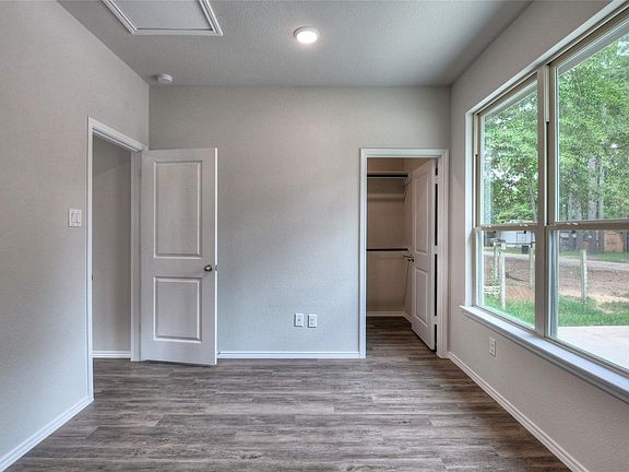 This home features 9 ft ceilings, 2 full bathrooms NO CARPET luxury vinyl plank throughout nice size walk in pantry, dining and kitchen totally open in house utility, appliance package including washer/ dryer/ refrigerator with ice maker on door all new appliances, both bedrooms have huge walk in closets. very convenient to I 45 and really close to Lake Conroe the subdivision has a swimming pool and park, there's also a boat ramp, just north of The Woodlands