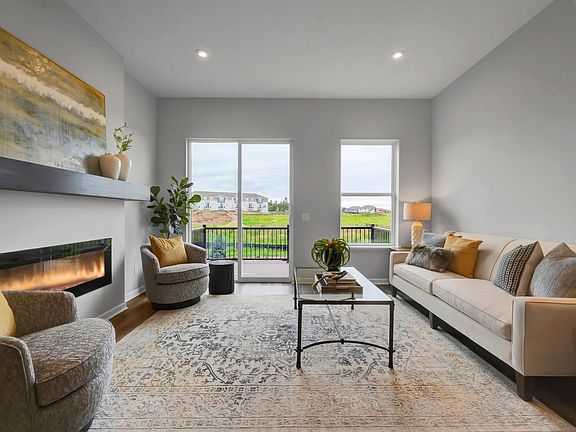 Featuring 1,864 square feet, has 3 bedrooms, 2.5 bathrooms, and room to grow. The entry and spacious 2-car garage both at the front of the home allow you and your guests entrance with ease. You will love the open-concept layout upon entry, which showcases a modern and open galley kitchen with lots of cabinetry and a large center island. The designer fireplace in the open family room makes for a warm ambiance on chilly nights. From the family room, a patio door leads to a quaint outdoor balcony, great for sipping your morning coffee. The main floor also includes a grand owner’s suite with an attached bathroom, along with the laundry room. Upstairs resides 2 oversized bedrooms, at opposite ends for added privacy, and a full bath. The unfinished full basement offers plenty of extra space.