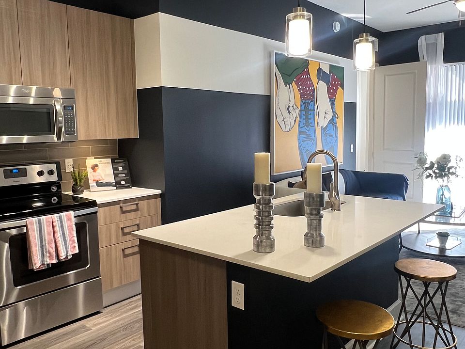 Beyond your front door, enjoy a collection of resort-inspired amenities. Take in the views from the rooftop terrace, unwind by one of the two heated saltwater pools, or host friends in beautifully landscaped courtyard grill areas. Stay productive in the business lounge, recharge your electric vehicle with on-site EV charging, or spend time outdoors on the walking and biking trails.