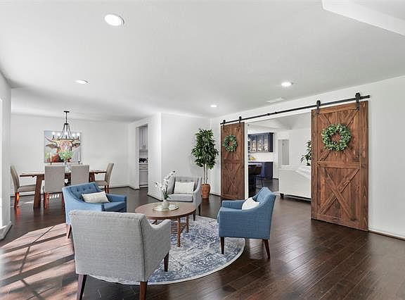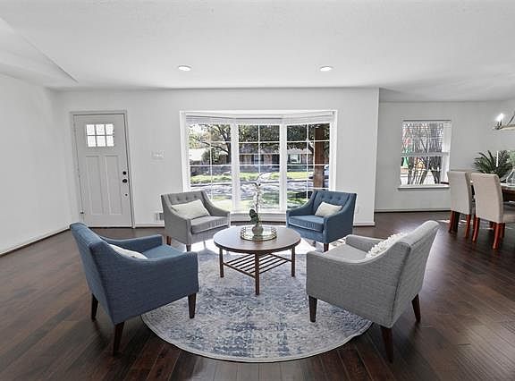 Stunning new designer renovation in Lake Highlands NE Dallas! Framed by beautiful Magnolias, this home boasts a bright, open floorplan featuring dramatic bay windows, vaulted ceilings, sliding barn doors, & high-end finishes. Trend-setting kitchen designed with custom soft-close cabinets, quartz countertops, SS appliances, & modern fixtures! Enjoy your luxurious master bathroom with impressive double shower & freestanding tub with chandelier. French doors lead out to stylish, lit pergola with bench seatingâperfect for outdoor dining, lounging, or cozy fire pit. Beautiful Pink crepe myrtles surround the backyard in the spring! Engineered hardwood floors, new windows, LED lighting, new copper wiring, See 3D Tour