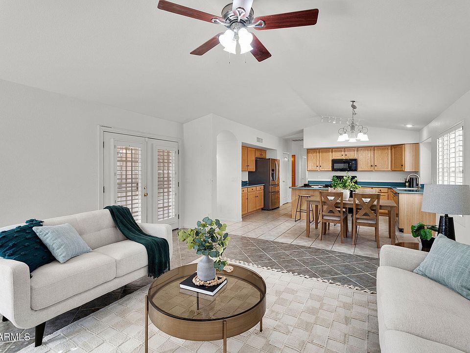 Welcome to Peoria living at its finest! This spacious 3-bedroom, 2-bath home plus den and 3-car garage offers comfort, flexibility, and room to grow. Step inside to find vaulted ceilings, a split floor plan, and both formal living & family rooms designed for effortless everyday living. Whether hosting family gatherings or enjoying a quiet night in, this home's layout delivers the perfect blend of connection & privacy. Relax on your private backyard patio & soak up the Arizona sunshine surrounded by low-maintenance landscaping. The community offers walking paths, lush parks, playgrounds, and sports courts, creating plenty of opportunities to stay active and connected. Perfectly located near hiking, golf, shopping, and dining, with convenient access to the Loop 101, 303, US 60, and I-17... this home makes commuting or exploring the West Valley a breeze. Experience comfort, community, and convenience - all in one beautiful Peoria neighborhood.