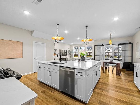 Don’t miss this better-than-new 3BR/3BA end-unit townhome—immaculate, stylish, and loaded with upgrades! Perfectly positioned on a premium lot with no rear neighbors, this home shines with an open layout, abundant natural light, and a sunroom addition that opens to a private patio surrounded by trees. The stunning kitchen features quartz countertops, an oversized island, tiled backsplash, soft-close cabinetry, a pantry, and stainless steel appliances including an armoire-style fridge and gas range. Enjoy the cozy gas fireplace, upgraded flooring, and thoughtful touches throughout including a water softener. Upstairs, the spacious primary suite offers a walk-in closet, double vanity, and frameless glass shower. The insulated 2-car garage provides extra shelving and storage. Located close to Radio Dr’s endless shopping and dining options, with quick access to I-94, this vibrant community also features a private dog park and nearby trails that connect to the regional system. Move-in ready and meticulously maintained—this one’s a true gem that won’t last! The home is pet free and smoker free.