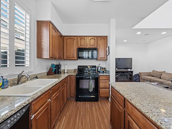 This charming townhome in the Villas at Sky Vista is an excellent choice for a first home or investment property. It features 2 bedrooms, 1.5 bathrooms, high ceilings, and plenty of natural light from its many windows. The kitchen boasts granite countertops, while the Jack-and-Jill bathroom offers added convenience. The fully fenced backyard includes a patio and storage shed, perfect for outdoor living., Conveniently located near shopping, Highway 395, Nevada Regional Park, and Sierra Sage Golf Course, this home combines comfort, style, and accessibility! Security System will not be included. Buyer's agent are responsible for notifying their clients that there may be listening and recording devices on the property, please consider this your formal notice, and ensure your clients are notified prior to entering the property. All information provided to be verified by the buyer and buyers agent. Final walk through constitutes satisfaction with information supplied herein and satisfaction with condition of the property as well as any completed repairs (if any). Seller will not close escrow until a signed final walk through or waiver has been received.