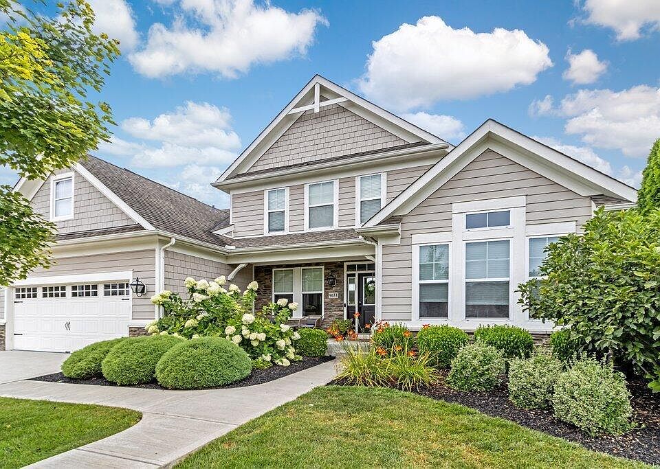 Welcome home to this stunning 5-level split in Jerome Village! The 5-bedroom home has been updated throughout and offers over 5K sq/ft of finished living space. Located on a private cul-de-sac with a scenic wooded/pond view to the rear. Updates include a beautiful new kitchen (2021) with quartz counters, tile backsplash, and stainless-steel appliances (including commercial sized Electrolux refrigerator). Other updates include a new bedroom and new full bath addition on the upper level (2021), new lighting throughout, newer water heater & A/C unit (2023), new built-in office shelving, new fireplace stone grout, and fresh paint. The jaw dropping rec room was finished in 2016 and offers a full bar/pub plus half bath. Dublin City Schools (Jerome HS), 3-car garage, 4 full and 2 half baths, 1st floor laundry, beautiful hardwood floors, his/her walk-in primary closet, back composite deck, irrigation system, electric fence, & more! Community barn/clubhouse offers two pools, fitness center, & restaurant. Don't miss! Agent is related to seller.