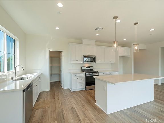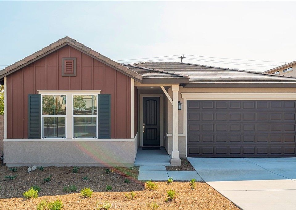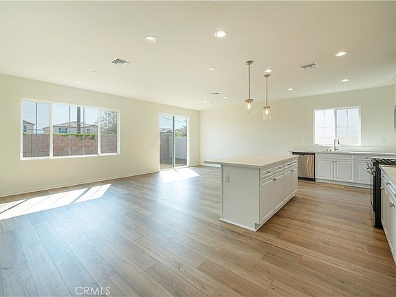 This beautiful and efficient 1654 sq/ft single-story floor plan is in the popular Orangecrest neighborhood of Riverside. This single-story Madeira home offer soaring 9-ft ceilings and large windows to let in lots of natural light. This home is enhanced with a west-facing location and is steps from one of the community parks. This floor plan boasts a bright, large kitchen/great room combo that is highlighted by a four-panel slider glass door that opens to the spacious back yard. This home also includes luxury vinyl plank flooring in most areas and is complemented by the use of soft low-pile carpet in bedrooms and closets. The stylish kitchen features an island, an abundance of white traditional white raised-panel thermofoil cabinets, quartz countertops, and Whirlpool stainless steel appliance set: electric range, microwave, and dishwasher, undermount kitchen sink with Moen faucet, and boasts a large walk-in pantry. The great room opens to a very nice sized backyard perfect for family gathering and outdoor activities. There are 3 bedrooms and there are 2 full bathrooms. The primary bathroom offers a large shower, linen closet, dual sink vanity, and complemented by a walk-in closet. This home sits on an estimated 4,912 sq/ft lot with driveway and two-car garage. The community parks offer outdoor family fun with playground equipment, dog parks, and open spaces! Great schools are nearby as well! Solar panels provided. Backyard is completed and blinds are installed in the home.
