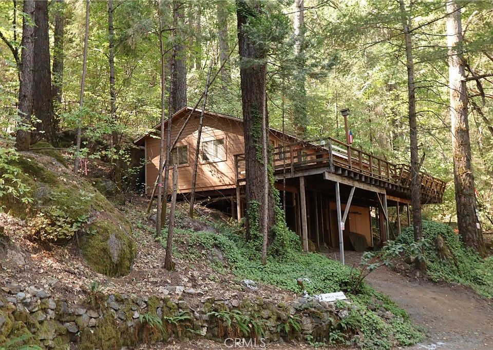 Pine Grove vintage hideaway! Tucked away in a beautiful secluded wooded setting, this lovingly maintained family vacation home is now on the market for the first time in several decades. Upon arrival you are welcomed by an extravagant deck that runs the building length extending the living area and providing a wonderful outdoor venue perfect for entertainment, recreation or relaxing under the stars. Warm knotty pine interior and plank ceiling offers a cozy cabin ambiance. A retro circular fireplace takes center stage and keeps the living area warm and snug. Two bedrooms at the back of the home guarantee privacy while the master suite includes backdoor access onto the deck. A short walk to the historic Pine Grove swimming pool and a short drive to nearby golf courses, hiking trails and restaurants ensure your summers will be full of many happy memories. Perfect for summer vacations, income producing rental or perhaps enjoy this unique sanctuary year round…whatever your decision the best is yet to come!