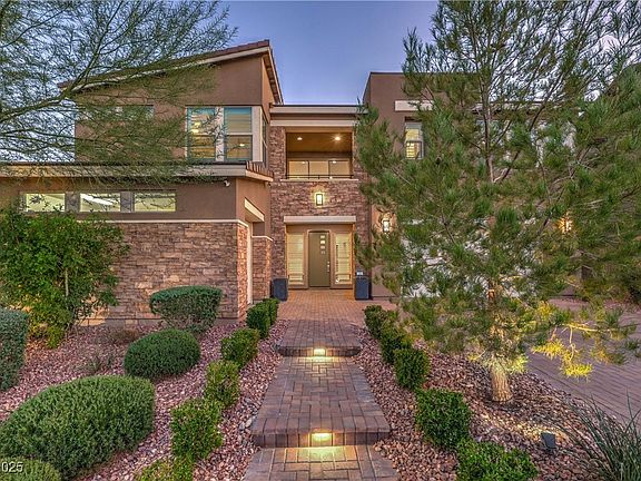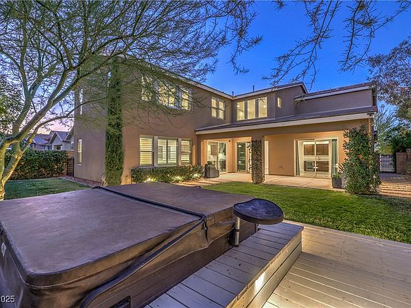 Experience luxury living in this magnificent Modern Skye Canyon home featuring 5 beds, 4.5 baths, and stunning upgrades throughout. Enjoy a gourmet kitchen with quartz counters, double ovens, walk-in pantry, and a triple stacker slider opening to relaxing zen like backyard with a custom-decked 6-person hot tub. This home boasts LPV flooring, upgraded cabinets, plantation shutters, a game room with wet bar. Downstairs Next-Gen quarters with En-Suite bath and walk in shower. The primary offers City and mountain views, double European showers and grand walk in closet. Additional features include a home gym, new appliances, smart security, water filtration, and custom lighting inside and out—perfect for modern, upscale living and effortless entertaining.