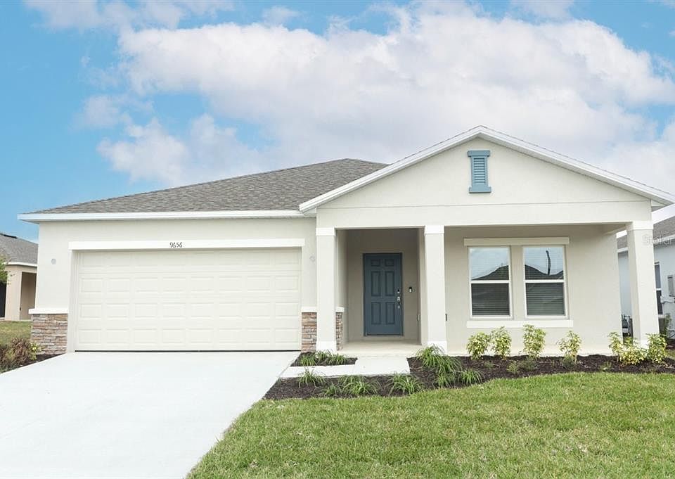 MLS#O6162657 Upon entering through the front door, guests are greeted with an unobstructed view extending seamlessly through the heart of the residence. The Magnolia plan boasts a luminous and expansive design, highlighted by an elongated entertaining corridor that encompasses the dining room, kitchen, and great room. Sliders at the rear open onto the back patio, enhancing the connection between indoor and outdoor spaces. Designed with culinary enthusiasts in mind, the kitchen features a lengthy prep and serve island, abundant counter space, and a spacious walk-in pantry. Its central placement ensures that the household chef remains engaged during social gatherings and events. The residence includes three generously sized secondary bedrooms that share two full baths. The serene primary suite is discreetly positioned at the rear of the home, offering a peaceful retreat. Ample storage is provided by an L-shaped walk-in closet, and the well-appointed primary bath features a large shower enclosure, private water closet, and dual vanity. Structural options added include: Covered Lanai