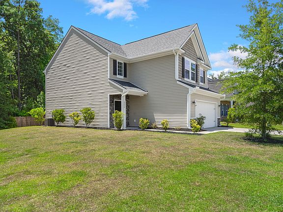 **NEW HVAC AND ROOF IN 2024! 65 inch TV IN LIVING ROOM, WASHER, DRYER, AND REFRIGERATOR CONVEY**Welcome to this stunning luxury home located in a prime neighborhood, offering the perfect blend of convenience and tranquility. Situated just a short drive from shopping centers, the airport, downtown Charleston, beautiful beaches, and major corporate hubs such as Mercedes, Boeing, and Bosch, this property truly has it all.As you approach the home, you'll immediately be captivated by the incredible lot it sits on, providing unparalleled privacy. With no neighbors on the left or behind, you'll relish the serenity of your surroundings. The expansive side yard backs up to a picturesque pond, while a lush wooded area adds an extra layer of seclusion. The meticulously maintained exterior boasts a spacious, wide driveway, a full gutter system, and exquisite landscaping, showcasing the pride of ownership. Furthermore, the roof was recently replaced with architectural shingles in 2024, and a brand new HVAC system was installed in the same year, ensuring worry-free living for years to come. Step inside, and you'll be greeted by a grand entrance that highlights the tall ceilings, abundant natural light, and beautiful wood flooring. The entire home has been freshly painted, presenting a flawless canvas for your personal touch. The open concept living area features a generously sized living room, complete with a wall-mounted TV that will convey with the home. Adjacent to the living room is a spacious dining area, perfect for hosting sophisticated dinner parties. The stunning kitchen overlooks the living space and boasts granite countertops, craftsman-style cherry cabinets, a stylish backsplash, and a full suite of high-end appliances, including a gas range. The laundry room is conveniently located on the main level and offers ample space, while the washer and dryer are included for your convenience. A custom-style vanity and a mirror have been added to enhance the functionality and aesthetics of the half bathroom. Upstairs, you'll find four generously proportioned bedrooms, including the luxurious primary suite. The primary bedroom offers abundant space for additional furniture and features two closets, one of which is a large walk-in. The en-suite bathroom is a true oasis, complete with double vanity sinks, tiled floors, a spacious soaking tub, and a walk-in tiled shower. The remaining guest bedrooms are equally spacious and share access to two well-appointed full bathrooms. One of the guest bedrooms boasts a great view and is generously spacious, creating a serene retreat for your guests or family members. Stepping outside into the backyard, you'll discover a custom poured concrete patio, perfect for al fresco dining and entertaining. Immerse yourself in the peaceful ambiance and natural beauty this home has to offer. This extraordinary home must be seen to be truly appreciated. Don't miss the opportunity to make it yours. Schedule your private showing today and experience the epitome of upscale living!