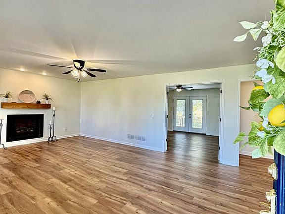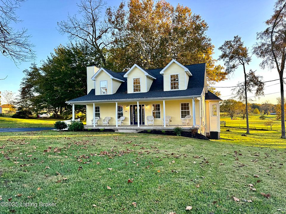 Country living at it's best! This 2042 square foot country style home is situated on a .60 acre lot with back yard adjacent to farmland complete with a farm fence. The home has been completely renovated inside with all new paint including ceilings and new flooring throughout the entire home. Every singe light fixture and faucet is brand new! New gas log fireplace in great room. The primary bedroom has new French doors with blinds leading out to large deck with new railing. You will be awed by the primary bathroom with a walk in tiled shower, new freestanding tub, and a 60 inch double bowl vanity with granite countertops. The half bath has a vessel sink on a butcher top counter Walk into the large kitchen that features white top cabinets, navy blue bottoms, and butcher block counter tops subway tile backsplash and stainless appliances. There are 5 windows offering so much natural light in this circular style eat in dining area. You will find an additional room on first floor that could be an office, a playroom, or a possible 4th bedroom (no closet), but has a storage area under stairs. The beautiful wooden stairs have been newly sanded and re-stained. Upstairs you will find a bonus room and 2 more large bedrooms, plus a large full bath with new vanity, toilet, lighting and fixtures. Outside you will hear a rooster crowing as you sit on the back deck or front porch that runs the length of the home! On top of all this, your children will go to Pleasant Grove Elementary, Eastside Middle, and Bullitt East High School. A showing will make you never want to leave!!