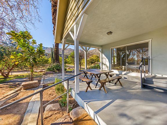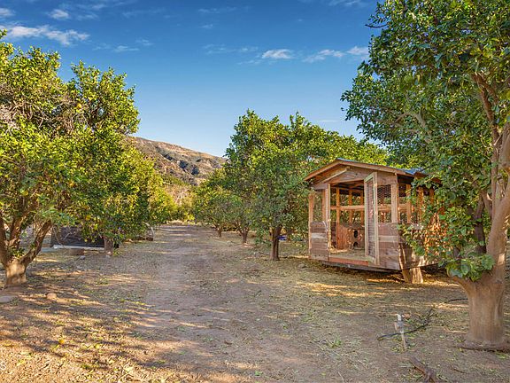 Set in rural Fillmore on the edge of the Sespe River at the base of the Los Padres National Forest, this 15.56 acre avocado and citrus ranch has everything for a gentleman farmer. The 4br/2.5bth, 2,400sf home was just completely remodeled with modern features while still respecting the original farmhouse charm! Divided into two separate living areas, the residence is ideal for a family that needs separate spaces. The downstairs has a brand new kitchen, open family room with vaulted ceilings, two bedrooms and 1.5 baths. The separate upstairs is cute as a button with new kitchenette, two bedrooms and remodeled bath. The covered patio and surrounding yard are protected on warm summer days by a stately sycamore and giant date palm tree, both standing the test of time. The property is about evenly planted between avocado and Valencia orange with an assortment of other fruit trees, including macadamia, guava, lime, lemon, peach, pear, and olive, among other varieties. The organic farmer allows free range chickens to run throughout the citrus trees, keeping the flock safe at night in a mobile hen house. The orchard is irrigated with ag shares through the Fillmore Irrigation District; a shallow private well at the river's edge could potentially be tapped to provide more water. The original stone ice house from the 1920's has been restored to make a separate office or artist's studio. A detached two car garage and adjacent carport/open barn can protect all vehicles and farm tools. This all-flat and usable property is accessed via a private gate, not shared with any neighbors. The back portion of the property would be ideal for horses and other farm animals, with ample room for an arena and equestrian barn.