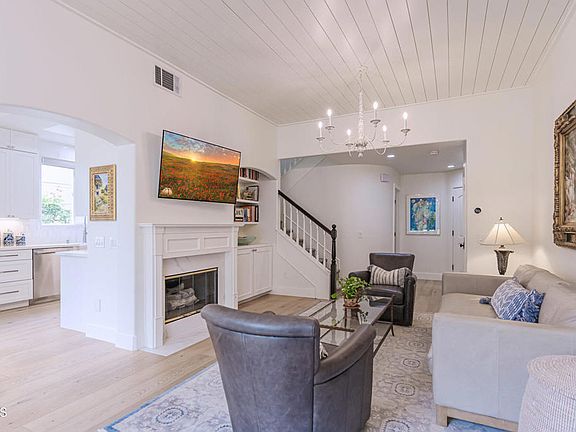 Located directly on the 9th fairway of Spanish Hills Country Club within the Spanish Hills Golf Villas II community, this extensively designer upgraded 3 bed/2.5 bath is the definition of a turn-key home. Every corner of the property was considered with the utmost of thought and luxury creating an environment that feels like a brand new build. As you walk inside the family room, you'll notice the gorgeous white plank ceiling, quartz fireplace, and a stunning custom pair of chandeliers that create one of the most elevated living spaces in the area. From the second-floor balcony, you'll enjoy a gorgeous view of the Las Posas Valley. The location on the 9th hole of the Spanish Hills golf course allows for the ambiance of one of the area's most beautiful courses to blend with the luxe finishes of the inside of this home. The kitchen has been exquisitely remodeled with new top-of-the-line cabinetry, marble backsplash, quartz countertops, a Thermador appliance suite complete with a 6 burner range, oven, microwave, dishwasher plus an oversized farmhouse sink. The wide plank wood flooring that is found throughout enhances the bright and modern styling of the space. Upstairs, the primary suite has been fully remodeled as well. The white plank ceiling found downstairs is mirrored in the primary bedroom creating a cohesive story in the home. There is a large walk-in closet and a romantic staircase that winds down to the backyard from the large tiled balcony for enjoying the golf course views. The primary bathroom is a true showstopper with its oversized shower with a full-length shower bench, stunning new double vanity w/ custom lighting, mirrors, and hardware. The other bedrooms have access to a full bathroom with new shower, bathtub, tile, and vanity. Outside, you'll find a charming backyard with a large built-in seating area and firepit, and a big custom patio with room for an outdoor living and dining area. The mature landscaping and the ambiance of the Spanish Hills golf course steps away add to the luxury of the space. The Spanish Hills Clubhouse, pool, gym, tennis courts, and dining room are all within walking distance. The Spanish Hills Golf Villas II community also has a pool, spa, community room, and a RV storage lot. Las Posas Country Club and Sterling Hills public golf course are also nearby. The rare combination of an impeccable location near 3 golf courses with a full designer remodel- there is nothing left for you to do but move in and call this home!
