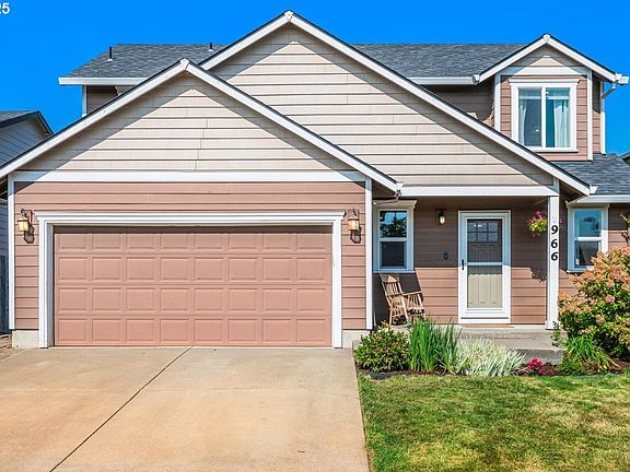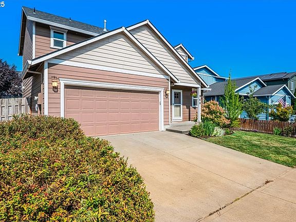 This beautifully maintained 3-bedroom, 2.1-bath home offers a comfortable layout with thoughtful updates throughout. The main level features high ceilings and newer vinyl flooring, trim, and paint, creating an open flow from the living area into the dining space and kitchen. The kitchen includes granite countertops, stainless steel appliances, pantry, and beautiful wood cabinetry with an eat bar. Upstairs the primary suite features a dual-sink vanity and walk-in shower, and a second full bath with a tiled vanity serves the additional bedrooms. The laundry room is conveniently located on the upper level near all three bedrooms. Additional highlights include a spacious, fully fenced backyard, tool shed, patio, and firepit, while the covered front porch adds a welcoming touch. Located in North Lafayette just minutes from McMinnville, this home offers access to nearby parks and beautiful Oregon Wine Country.