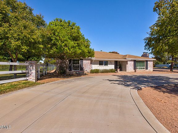 Experience the perfect blend of rustic charm and modern convenience with this beautifully remodeled 4-bedroom, 3-bath farmhouse, set on 1.1 flood-irrigated acres just minutes from the heart of downtown Gilbert. Spanning 2,800 square feet, this move-in ready home underwent a full renovation in 2022, showcasing luxury vinyl tile flooring, new carpeting in bedrooms, granite countertops, stylish lighting fixtures, & updated bathrooms with marble flooring.