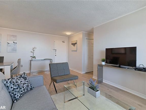 Welcome to this fully renovated 900 sq. ft. gem perfectly situated in the desirable Clarkson neighborhood! This spacious 2-bedroom, 2-bathroom unit has been beautifully updated and offers the perfect blend of style, comfort, and convenience. Step inside to find a modern open-concept layout with laminate flooring throughout, no carpet anywhere! The updated kitchen features sleek cabinetry, a newer stainless-steel fridge, stove, range hood, and a convenient all-in-one washer/dryer, making it as functional as it is stylish. The adjoining breakfast area flows seamlessly into the bright living space, filled with natural light from large windows. Enjoy unobstructed southwest views from your oversized balcony, perfect for BBQs, entertaining, or simply relaxing with a sunset backdrop. Both bedrooms are generously sized, with the primary suite offering its own full bathroom for added privacy. This home also boasts plenty of storage options including an in-suite storage room, two linen closets, and an additional locker in the underground facility. With 2 full bathrooms, this unit is ideal for families, professionals, or those looking for a comfortable downsizing option. The location is unbeatable just steps to local shops, restaurants, and beautiful parks, with effortless access to Clarkson GO Station. Plus, you're only 2 km from the QEW for an easy commute. This pet-friendly community welcomes BBQs, making it perfect for both everyday living and entertaining. Even better, maintenance fees include high-speed cable and internet, giving you exceptional value and convenience. *Photos from previous listing, seller has since removed wall between kitchen and living room. Some non-professional photos at the end for referencend.