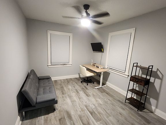This house has been recently refreshed and all new appliances and furniture have been added. This home is fully furnished and stocked with everything someone would need for their daily lives. You can literally show up with your clothes, and you are good to go. The two main bedrooms have a Sleep Number C1 Smartbed (room 1) and a Posturepedic 14" pillow top (room 2). The 3rd bedroom is outfitted as an office/workspace, with a small futon style couch that folds into a bed and a power standing/sitting desk with a very comfortable office chair. The kitchen is complete with any and every utensil and cookware that one might need to prepare and serve any kind of cuisine. The large entire yard is fenced and the back yard is very private place to relax and unwind. The main bathroom included both a bathtub and a shower to accommodate whatever is your preference. All utilities are included in the monthly rent cost (water, electric, sewer, gas, and internet). Home boasts a smart TV in each bedroom as well as in the living room and office.