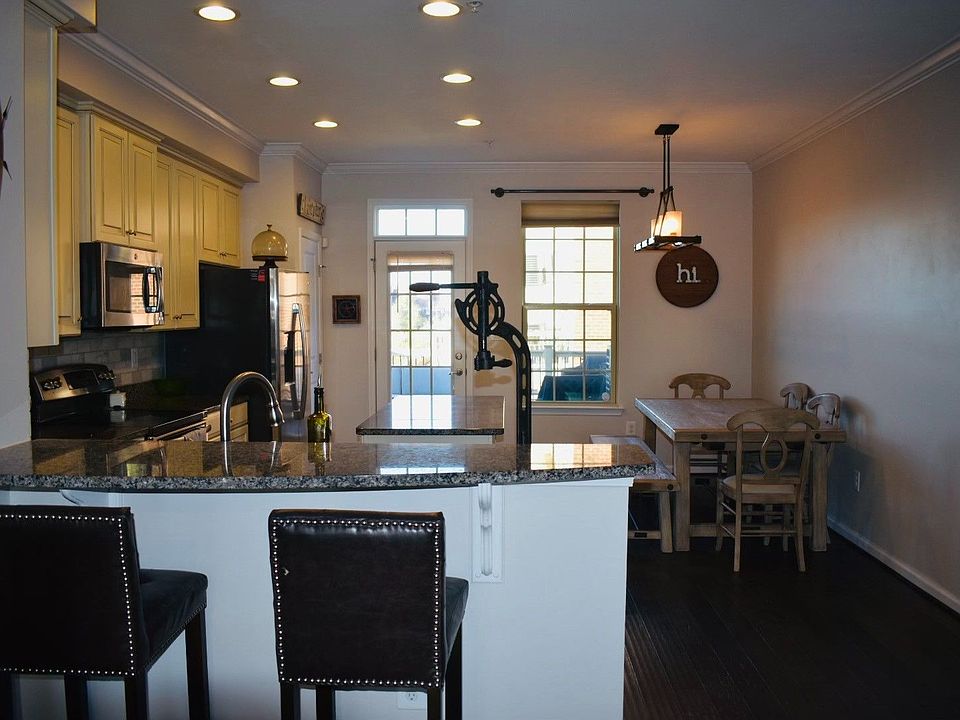 Built in 2014 this spacious three level townhome is nestled in O'Donnell Square, The kitchen features stainless steel appliances, granite counter tops, beautiful backsplash and tons of cabinet space. The open floorplan with tons of windows give the living a light and airy feel. A huge deck is just off of the kitchen, perfet for grilling and dining alfresco.