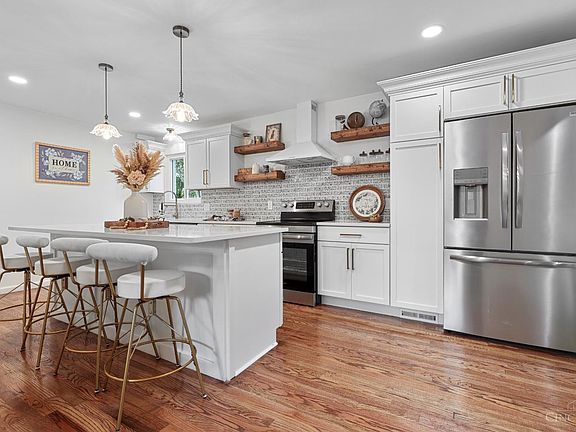 Beautifully renovated 4 bed, 2.5 bath home offering 2,147 sqft with a 3-car garage with full basement and dual extra-wide driveways for abundant parking. Updates include a stunning new kitchen with stainless steel appliances, spacious primary suite with walk-in closet featuring custom built-ins and makeup vanity, refinished hardwood floors, fresh interior/exterior paint, new windows, doors, and hardware. Designer lighting and plumbing fixtures throughout. Enjoy the large family room addition, perfect for gatherings, plus a private backyard with a huge party deck and professional landscaping. Agent related to seller. Move-in ready, priced to sell and can close quickly. Definite MUST SEE!!