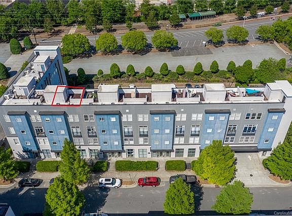 Rare 3 level townhome with rooftop patio in highly coveted Third Ward location! Walking distance to Panthers and Knights Stadium, restaurants and bars! Split floorplan with Bd/Ba on 1st and 3rd level allows for privacy and main living area on 2nd level. Brand NEW carpet and paint as of 5/6/20! Granite countertops and stainless-steel appliances in kitchen. Spiral staircase up to your private rooftop patio overlooking B of A Stadium and the beautiful Charlotte skyline with YEAR-ROUND VIEWS! Private gated parking for owners - also great parking for gamedays! Unit is priced to sell!
