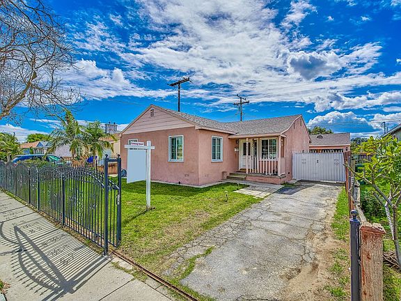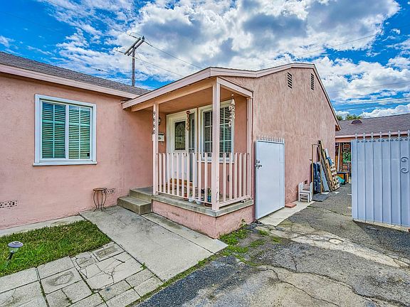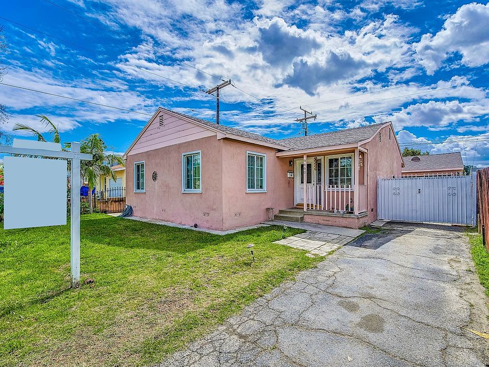 Residing in Pico Rivera is a charming family home with 3-bedrooms and 2-bathrooms set within a bright 1,365-sqft of living space! A fully fenced front yard leads up to a quaint porch and welcomes you inside to a formal dining room with cozy seating space featuring glossy laminate floors and recessed lights. Through a set of double French doors, enter a lovely living room fitted with a center ceiling fan, nice window coverage plus backyard access, baseboard moldings, and tile flooring to provide a simply comfortable space for entertaining. The open kitchen includes lots of cabinet storage, stone counters, built-in appliances, a cute dining nook, and leads to the good size laundry area plus one of the full bathrooms. In each bedroom, built-in closet storage can be found along with center ceiling fans, lovely French windows, and glossy flooring. Venture out to the sun-washed backyard and enjoy a private patio space, grassy area, and access to the detached garage that is currently being used as an unpermitted bonus room. Centrally located near popular dining options, schools, the 605-freeways, gas stations, the Rivera Park, and much more!