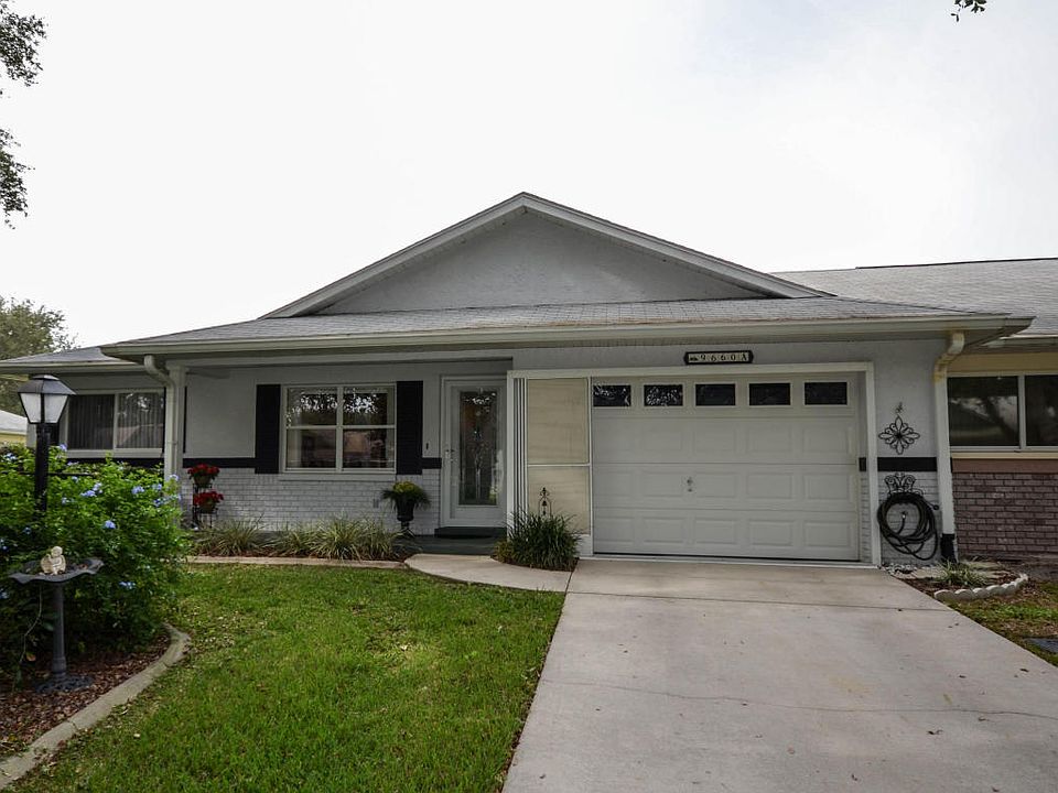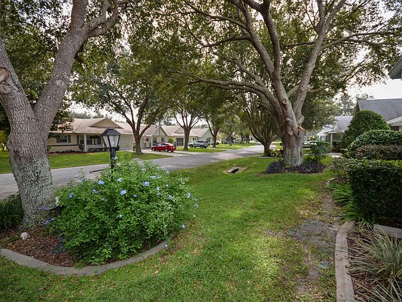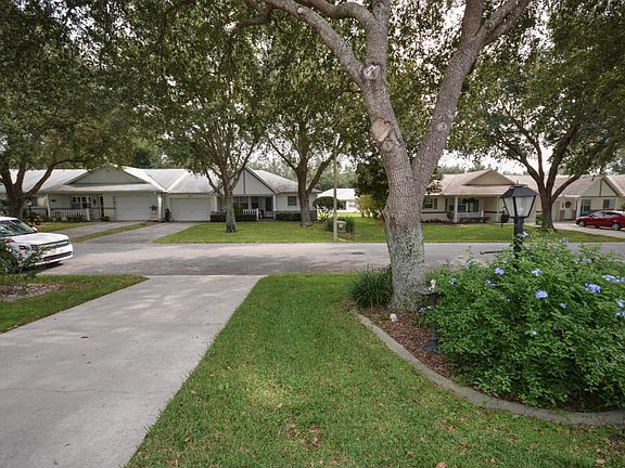 This very nice end-unit Delphina model villa home has been well maintained and is located in the much sought after gated 55+ community of On Top of the World. Home features a newer roof (2013), newer HVAC (2011), newer refrigerator (2016), interior paint (2015), exterior paint (2015), decorative glass front door and full glass storm door, spacious Sunroom with custom UV sunshades, 2 French doors (access Sunroom), extra wide 1.5 car Garage, pull-down stairs to access attic storage, and more! Lawn care, basic cable, gym, exercise classes, 24-hour guarded gate, and more are included in your monthly HOA fee. As you enter the home you find yourself in the spacious Living Room. Moving toward the back right of the home you find the open eat-in Kitchen with pantry and eat-at Prep-Island.