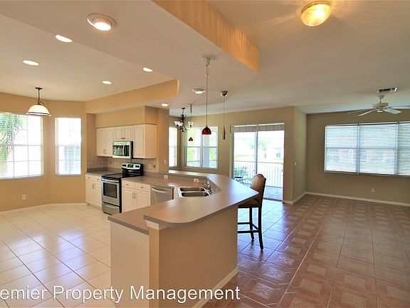 ** 2 BED / 2 BATH + DEN ** VILLAGES OF BONITA ** ANNUAL** - This 2nd floor coach home has lovely lake and fountain views to enjoy from your breezy, screened lanai. With 2 bedrooms, 2 baths and a den, this home features an open great room floor plan, ceramic tile throughout, and appealing, soft beige paint color. The kitchen is very spacious, with a long, wrap around breakfast bar featuring pendant lighting above, stainless steel appliances, a pantry closet, and cabinets galore for lots of storage. Master suite has large walk-in closet, dual sink vanity, garden-style tub and separate shower. Guest bedroom is privately located off of the den. Newer AC system and water heater. Attached one-car garage with entry at lower foyer. Guest parking across the street and community amenities nearby. Enjoy the club pool and spa, parties and activities in the community room, fitness center, two tennis courts and shuffleboard. This well established, socially active community is located close to area beaches, the popular Coconut Point Mall, fine dining, a variety of shopping venues and is less than 30 minutes to SWFL International Airport. **FIRST, LAST, AND SECURITY REQUIRED** **ONE SMALL PET ALLOWED W/ APPROVAL + PET DEPOSIT** (RLNE4048491)
