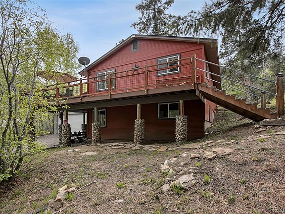 Premier mountain home in Morrison's Hilldale Pines located on 1.16 acres filled with beautiful Aspens, Pines, and a delightful year round stream. This 4 bed, 3 bath home with primary suite & spacious lower level living has been thoughtfully renovated and offers custom features throughout. Outside you will enter a wide rock driveway with multiple parking options to include a new oversized two car garage, fully insulated, LED lighting and constructed with long lasting metal siding and roof. Fit a full size truck + car as well as storage. Additional parking includes a covered carport and park your trailer, camper or RV along the graded lower level parking area. New retaining walls with walking paths and stairs to the backyard are well designed along with newly constructed covered back patio with gable roof. The wrap around deck is complete with heavy gauge wire deck rail system while a Conifer Rock wall chimney adds to the home's character. Manage a garden or a chicken coop with a pro-built shed and find comfort with newly painted, pine wood siding installed with Tyvek underlayment and a 100 year Dupont metal roof installed with 50 year transferable warranty. Inside you will find the same level of detail with updated kitchen, Samsung appliances, hardwood and tile flooring, custom wood trim and casing throughout, solid core wood doors, pine clad walls, new double pane casement & sliding windows, and 48" of insulation in the attic space keeps energy bills low. Every aspect of this home and property have been upgraded, renovated and improved to create a wonderful mountain living experience. The property is fenced for all your pets to enjoy the visiting wildlife, ample cut wood on site, loads of storage for all your gear, located on the school bus route for ease of transportation and fantastic park just up the street. Perfect location for cycling and outdoor enthusiasts and well located within Hilldale Pines. Only 3.4 miles to the King Soopers Center. Come explore today!