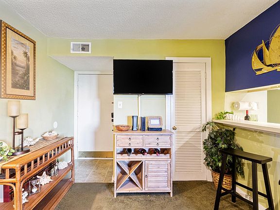 This location is unbeatable! Just steps from the beach, this fully furnished 2-bedroom, 2-bath condo offers ultimate convenience. Walk out your door, take the private walkway to the road, cross the street, and head down the public access — in minutes, you’re right on the sand! Situated directly across from the ocean, this condo features a spacious back deck with beautiful views of the Apache Pier. The community also offers two pools with expansive sun decks, perfect for relaxing after a day at the beach.