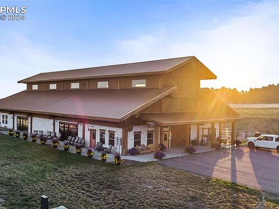 Auction Property: BIDDING OPEN: Bidding ends 9/26. This property has been placed in an upcoming Absolute auction. The list price is the opening bid only and does not indicate the reserve or sale price. Property is subject to a buyer's premium pursuant to the Auction Participation Agreement. Live the country life in the shadow of Pikes Peak and the Rampart Range. Currently home to “Flying Horse Ranch” and situated between Denver and Colorado Springs, this nearly 1,400 acre ranch property offers space to roam amidst gorgeous nature, a full complement of equestrian infrastructure, a 14,000 square foot Ranch House currently being used as a wedding venue, and a myriad of possibilities. Watch the four-season parade, from bears and mountain lions to elk, deer, and many species of birds. The estate conveys with significant water rights within 4 different aquifers. Horse lovers will appreciate the impressive equestrian amenities, supporting potential commercial opportunities such as sporting competitions, riding lessons, and boarding. Additional structures and amenities are well-suited to cattle, providing another avenue for the future. The primary Ranch House and two additional ranch residences offer thoughtful spaces and a foundation for future growth with easy access to I-25 and just 30 minutes from Colorado Springs and 1 hour from Denver.