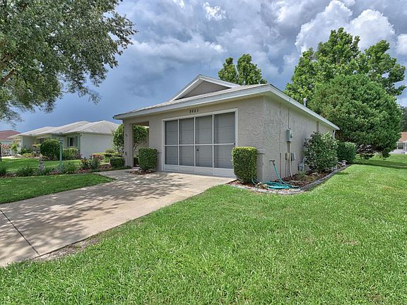 This nicely landscaped 2 bedroom, 2 bath, 1.5 car garage with a 10 x 30 extended screened lanai split plan Trieste model home in Crescent Ridge II was built on a large lot. Natural wood floors/carpet in living room area, tile in the kitchen and bedrooms. Extra counter with cabinet and overhead cabinet in kitchen/dining area. Ceiling fans in bedrooms. Double sink in the master bedroom. Dryer vents recently cleaned. 5 year termite treatment done in March and there is six months left on the A/C service contract. Located in Ocala's premier, gated, 55+ community, loaded with amenities, including golf cart access to two shopping centers.