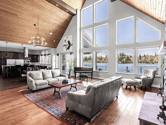 Welcome to this one-of-a-kind lakefront oasis on the tranquil shores of Silvermere Lake. This magnificent 6,800 sq ft custom-built estate is nestled on .63 acres of pristine, private waterfront—featuring over 200 feet of sandy beach, a floating dock, private boat launch, and floatplane access. This is resort-style living at its finest. Designed with absolute attention to detail and built with no expense spared, this stunning home contains entertainment rooms, guest rooms, workshop, metal roof, stamped concrete decks with top-tier craftsmanship throughout. Step inside to an expansive open-concept layout with soaring 26’ ceilings, a designer chef’s kitchen, and an entertainment-sized great room perfect for hosting.