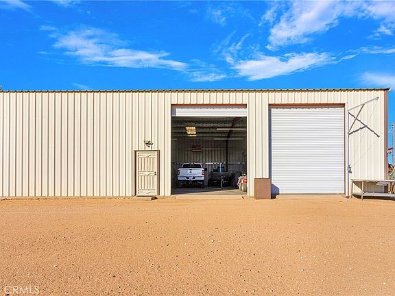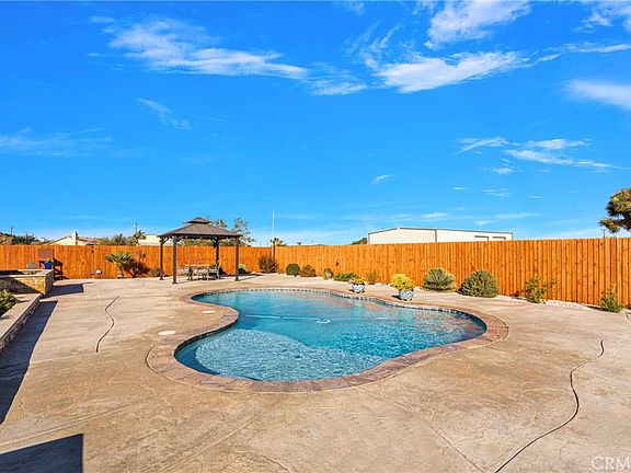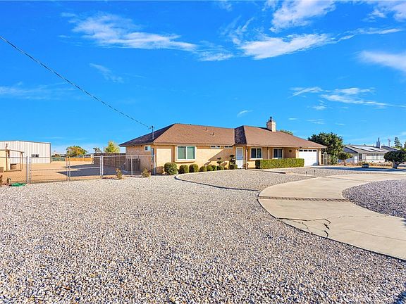 Welcome to your TURNKEY pool home desert oasis on 1.03 acres offers the best of comfort and functionality in the highly sought-after Snowline district, just 150 ft from a paved street! This beautifully updated 3-bedroom, 2-bath, features an oversized U-shaped driveway with ample RV parking with electrical hookups, fully fenced for privacy and convenience. A must-see 2400 sq ft (60x40) WORKSHOP provides exceptional workspace with 2 RV pull up doors for all your recreational toys to fit. The backyard offers an expansive west-facing layout, including a covered patio & beautiful sparkling pool that invites endless outdoor gatherings. Dual A/C systems ensure comfortable climate control year-round, and newer dual-pane windows keep the home energy efficient. Inside, you'll find freshly painted interiors and exteriors, a modernized kitchen with custom cabinets, granite countertops, a dual-zone oven, gas stove, microwave & dishwasher. The primary suite boasts an upgraded ensuite bathroom with a new vanity, tiled shower and tub, and beautiful hardwood floors that transition seamlessly into the other two bedrooms. In the main living spaces and hallways, tiled flooring provides both style and durability with the living room’s wood-burning stove brings that added warmth all winter long, with no need to to use your heating. Additional features include upgraded sub-panels with updated electrical pole line all within the last five years. Upgraded bathrooms with new toilets, ceiling fans in each bedroom, dedicated indoor laundry with direct pool access, and a fenced-in area with a shed, perfect for pets or extra storage. No expenses were spared updating this beautiful home for you —where comfort meets functionality, and every detail is designed for a lifestyle you'll love. Make this desert retreat yours and start living the dream today!