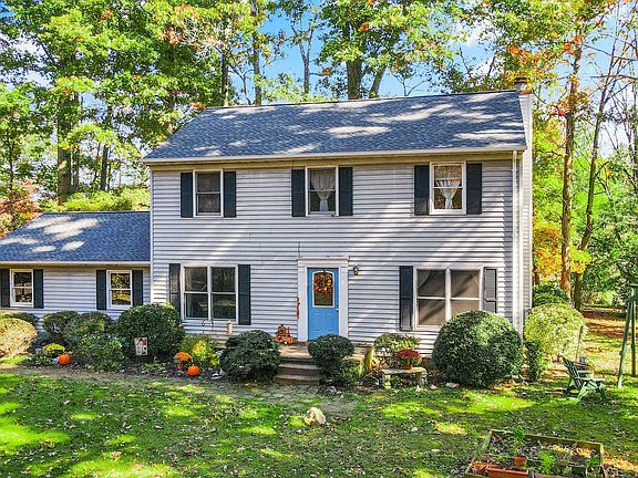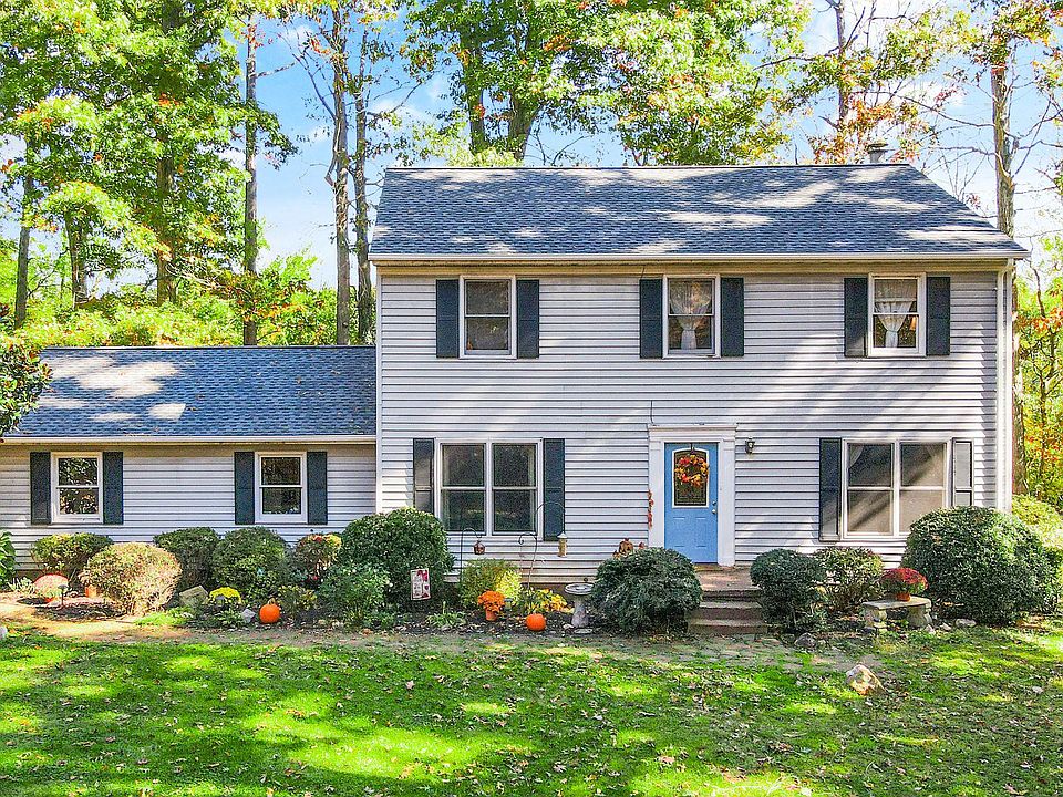 Welcome to Routts Hill Road! Situated on just under one acre of wooded serenity, this Colonial style home offers the convenience of being close to town, with the peacefulness of country life - and NO HOA! This traditional floor plan offers a formal dining and living room right on either side of the foyer. The back of the main level opens to an open kitchen and family room with gas fireplace and sliding doors to the deck and backyard. There is also a den off the main level, perfect for a playroom or TV room. The home offers a 1 car, side entry garage, and plenty of parking for guests. A large shed sits on the edge of the property, with wide swing doors to accommodate larger lawn equipment. Upstairs you'll find 3 well-sized bedrooms, a shared bath, and the primary bedroom and bathroom. The roof, HVAC, deck, and some windows were replaced recently. Home is being sold as-is. 9665 Routts Hill Road is ready for new owners to make it their own!