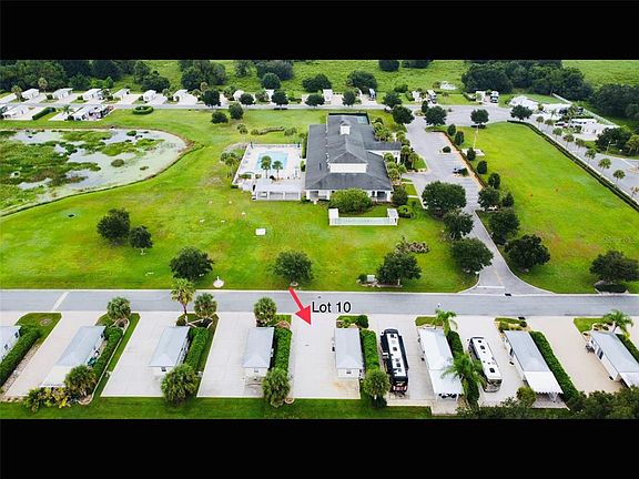 Welcome to your paradise at Florida Grande Motor Coach Resort—an exclusive gated haven for Class A and Super C motorhomes! This exceptional Lot 10 boasts stunning views of the expansive 20,000 sq ft clubhouse and shimmering pool in the front, while the back offers tranquil pasture views where friendly cows often come up to the fence for a visit. The prime back-in lot is east-facing, ensuring warm, sunny mornings on your 26×76 concrete pad, complete with full hookups and additional pavers for convenience. Inside, the charming Grande Suite spans 384 sq ft and features elegant crown molding and tile flooring throughout, providing a stylish retreat that comes partially furnished. The beautifully designed kitchenette includes beautiful wood cabinets, a full-size refrigerator, and a microwave, while a spacious full bath and a handy storage area with a washer/dryer add to the suite’s practicality. With serene views in both directions, this property is a tranquil retreat. Located just an hour from the excitement of Tampa, Orlando, and Ocala, it’s the perfect spot for unforgettable Central Florida day trips. If you prefer to stay closer to home, spend your days relaxing by the pool, challenging friends to a game of pickleball, or enjoying a lively card game. Join in a line dancing class or explore a new craft project! The community welcomes you with open arms. At just $995 per quarter, the HOA dues cover incredible amenities including water, sewer, trash, mowing, irrigation, a dog park, and all clubhouse facilities. Plus, you’re welcome to bring two pets! This all-ages community is truly special, offering a unique lifestyle in an ideal location. Don’t wait—your dream retreat is calling! Contact us today to schedule a tour and make this paradise your own!