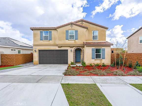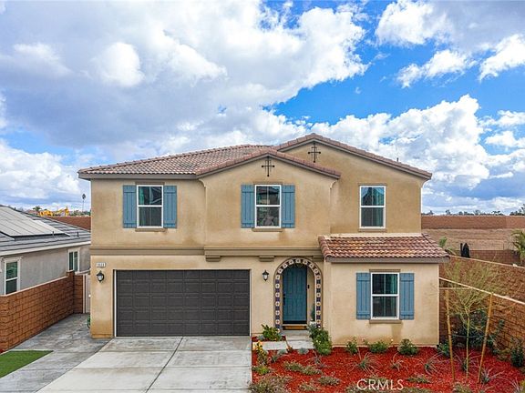 NEW PRICE! SECOND CHANCE! ACT NOW! (No Fault of the Seller as Buyer's loan had unexpected issues) WHAT'S BETTER THAN BUYING A BRAND NEW HOME?!!! An almost brand new home with TONS OF UPGRADES that is less than 2 YEARS OLD with FULLY LANDSCAPED FRONT/ BACKYARDS & TOTALLY PAID OFF SOLAR! Enjoy 4 Bedrooms + Loft (1 Full Bed/1 Full Bath Downstairs)( Potentially 5 bedrooms!) In one of the BEST COMMUNITIES IN RIVERSIDE, close to Top Rated Schools like Mark Twain Elementary, Amelia Earhart Middle and MLK High, Shops, Restaurants, Parks and the 215/91 Freeways! This gorgeous home is situated on a super nice manicured, low maintenance lot with stamped concrete patio & walkways, artificial turf and no direct back neighbors! Entertain your friends and family in your Quartz Island Kitchen with SS appliances that overlooks your Giant Great Room with views of the backyard and surrounding hills! Some of the upgrades include newly painted neutral walls and ceilings, luxury vinyl plank wood flooring, custom window coverings and plantation shutters! Save tons on Electricity Bills with Solar and Energy efficient upgrades throughout this 2022 home! Owner has invested $22K in Solar and $30K in Landscaping, so this is the deal of the century in this area! The community still has that new neighborhood feel with a tot lot for the kiddos and dog park right down the street! Come see this incredible property as soon as possible because this one will not last long!