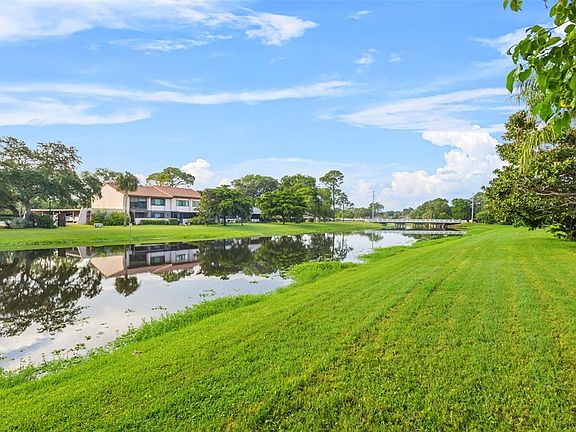 Wow! This ground floor 1 bedroom, 1 bathroom villa is absolutely finished to the nines! Located in the quiet Timberwoods community, this corner unit home is located under a large shade tree, on a canal that leads into the Lake Seminole/Cross Bayou watershed, directly across from the community pool and tennis courts. Step inside this lovely unit and you are greeted by an open and inviting layout. No space is wasted and includes vaulted tongue and groove knotty pine ceilings, easy to care for luxury vinyl plank floors, an impeccibly appointed kitchen with stainless steel appliances, solid wood cabinetry, solid surface quartz counters, full sized stackable washer and dryer, wine fridge, and lots of storage. This lovely villa also includes custom built-in closets, a newer water heater, new impact windows, updated electrical panel, and newer ac unit. Outside the home includes an updated Florida room, storage closet, and a new paver patio. Come see this turn key home before it's gone!