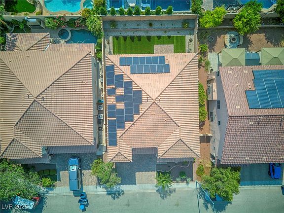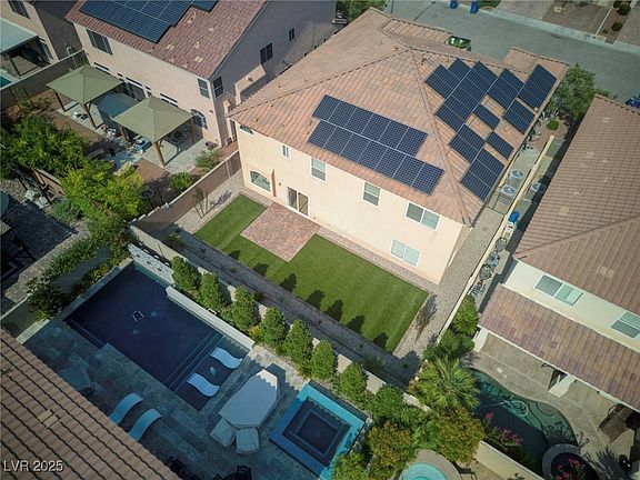 OWNED SOLAR — $46K PAID OFF, NO LEASE — LOW BILLS. 4,340 sq ft with 5 bedrooms, 4.5 baths, dual primary suites (one upstairs, one downstairs), chef’s kitchen, luxury SPC flooring, spa-inspired baths, media lounge with fireplace, huge loft, landscaped backyard, and 3-car garage — efficient, stylish, and ideal for multigenerational living.