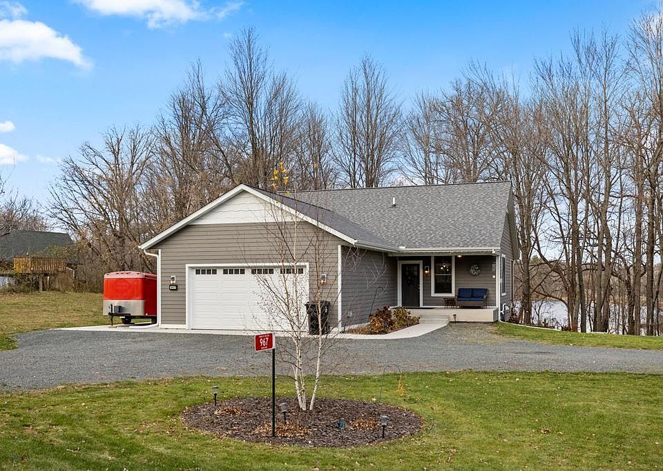 This stunning, newly built riverfront home along the Apple River combines luxury and tranquility in a pristine natural setting. Completed in 2021 with exceptional attention to detail, the property boasts 144 feet of private river frontage and sits on an expansive 1.51-acre lot. The kitchen is equipped with stainless steel appliances, granite countertops, and ample cabinet space. The lower level is a retreat of its own, boasting a large family room perfect for gatherings, as well as a unique spa-like experience with a full shower room and a separate soaking bath, ideal for relaxation or unwinding after a day spent outdoors. Every detail of this home reflects quality and refinement, creating a haven for those seeking comfort, beauty, and a connection to nature along the Apple River. Outside, the sprawling yard invites endless possibilities for outdoor living, bonfire nights by the river, to water activities like kayaking or fishing. Separate shed set up with electric, and heat for extra sleeping or storage