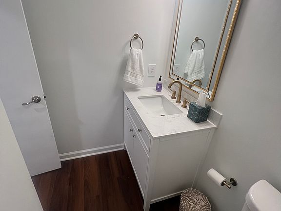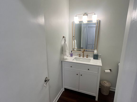 Updated Half Bath: The first-floor half bath has been fully renovated with a large vanity and new fixtures for added convenience.