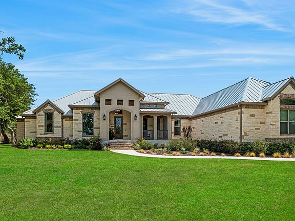 Exquisite design, stylish and immaculate are just a few words to describe 967 Belle Oaks Blvd! The details in this home are bespoke, from the trim work to the finishes...The Outdoor living is paramount here with the built-in BBQ area, outdoor fireplace, to the fun firepit for chilly Hill Country nights and the raised bed gardens. The Great Room with a modern take on timber frame construction is open to the dining and Kitchen making entertaining and lifestyle seamless. The Kitchen is a culinary delight with top of the line appliances, ample counters and cabinetry and stylish design. Escape to the primary suite with the spa worthy bath and large closet; a separate guest suite is wonderful for multi-generational living while 2 additional bedrooms share a Jack 'n Jill Bath with separate sink areas. The laundry room is off the Mudroom w/built-in drop zone and the oversized 3 car garage features epoxy floors and cabinets. The only room upstairs is a WOW Speak Easy room perfect for whiskey/wine collectors or as a media/gameroom. Belle Oaks Ranch is convenient to San Antonio and all it has to offer with awardwinning restaurants and popular shopping nearby. The neighborhood is gated and offers a resort-style amenity center with splashpad and lap pool, putting green, bocce ball, tennis/pickleball courts, playground AND sport court! Popular Comal Schools! This home is stylish, immaculate and ready for you!