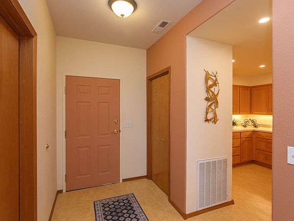 Staged and ready for you to call home. Sweet one bedroom unit with office and extra room off bedroom for crafts and additional space. This unit is very desirable due to its location at the end of a separate wing; a private door takes you to the covered patio and opens to the courtyard. You might want to garden in pots on this patio if you have a green thumb. The kitchen has been totally remodeled with beautiful custom alder cabinets, pull outs, great storage & kitchen eating bar & pass through. All completed with beautiful wood, French doors, Berber carpet, marmoleum floors in utility rooms, up and down blinds - very well taken care of. Quiet & private as can be for a condo in this 5 star Senior Community - so many things to be a part of, if you desire. Mountain Meadows has won many awards for a senior retirement community. Library with cozy fireplace, artists studio, woodworking shop, fitness center, pool and spa and beautiful formal dinning experiences await.