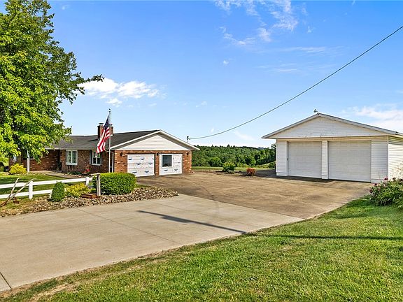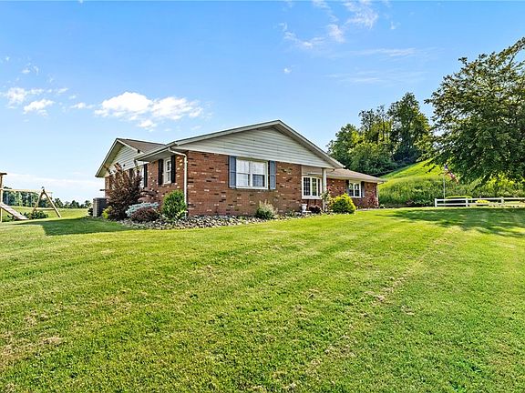 Welcome Home to 967 Good Intent Road! This beautiful 93 acre farm sits high above the hills in Claysville. Custom brick ranch has been newly updated throughout. A HUGE 20x20 living room has been added with fireplace, next to the dining room and amazing kitchen! A 7x3 pantry and large island add so much storage to this already spacious kitchen. A full bath, large main bedroom with 1/2 bath and 2 nice sized bedrooms finishes off the main level. Downstairs boasts a 24x 21 family room with full kitchen and bar area! Extra storage, a full bathroom and 11 x 8 laundry room are also on the lower level. Walk out of the door and enter the amazing backyard with 19 x 11 gazebo that overlooks many of the acres. An oversized two car detached garage, a finished 20 x28 former photography studio and chicken coop await. Across the road is a 40 X 64 equipment building with 12 X16 doors. Most acres are newly fenced and there is even a small pond.