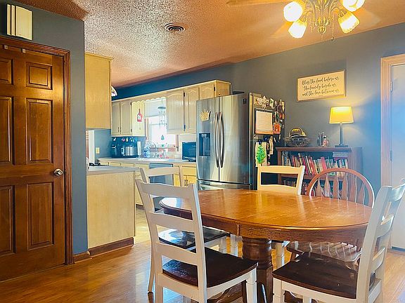 Move-in ready 4-bedroom, 2-bath ranch style home with many updates. This well-maintained home features a large family room with gas fireplace, galley kitchen with gas range, dishwasher, walk-in pantry, and additional family space. Bathrooms have been refreshed, one with double vanity. Recent upgrades include metal roof, well pump, exterior doors, covered back patio, HVAC, and replacement windows. Front bedroom has access to original fireplace.