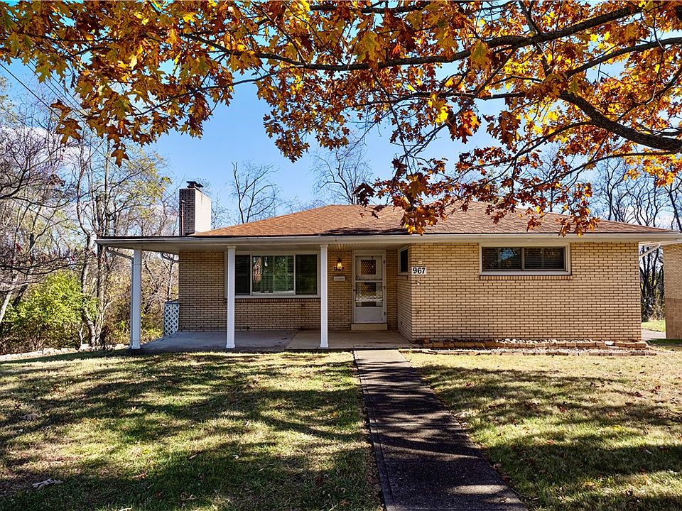 Welcome to this classic 3-bedroom, 2-bath brick ranch-style home located in the community of Braddock Hills. This home offers true one-level living with a spacious layout and updated windows that fill the space with bright natural light. The living room features a large picture window and a stone fireplace, opening seamlessly to the formal dining area. The kitchen provides ample cabinetry and counter space, with views of the backyard. Three bedrooms and a retro tile bath complete the main level. The lower level offers a full basement with a laundry area, a second full bathroom, and access to the integral garage. Enjoy outdoor living on the raised deck overlooking a private, tree-lined backyard with wooded views. Additional updates include Renewal by Andersen windows. Conveniently located near shopping, dining, parks, and major highways, this home offers comfort and convenience in a peaceful setting.