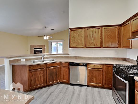 Discover a sanctuary of style at 9670 E Mt. Baldy Way! This stunning 1,907-square-foot residence features 4 spacious bedrooms and 2 refined bathrooms, perfectly blending elegant design with a warm, inviting atmosphere. The heart of the home centers around a sophisticated living area anchored by a cozy gas fireplace. You'll love the well-appointed kitchen, boasting premium appliances, expansive counter space, and rich wood cabinetry. Flooded with natural light through oversized windows, every room feels bright, airy, and energized. Enjoy the convenience of the included washer and dryer. Step outside to your fully fenced backyard, an ideal retreat for relaxing or gatherings. Park with ease, with an attached 2-car garage. Situated in a premier neighborhood of Hidden Vista Hills, just minutes from top-tier schools, boutique shopping, and fine dining. Easy access to I-10 and just 15 miles to Tucson International Airport. Call us today and schedule a tour!