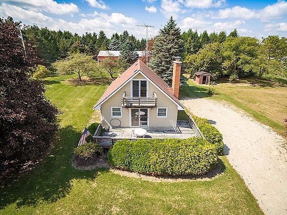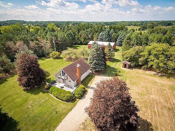 This cute 1,000 sq.ft. Cape Cod style home sits on 5 acres, has new flooring throughout and fresh interior paint! The main floor features a living room with a wood burning fireplace, dining area with access to the front deck, a large bedroom and mud room with laundry area. The spacious second bedroom is on the upper level, with a bonus room that has a balcony, could be used as unconventional 3rd bedroom. The 30x60 pole barn has a concrete floor, electricity, separate workshop area and drive-thru. doors. The property is fenced and has a variety of trees, including fruit, pine and maple. If you're ready to enjoy country living, this is the place for you!